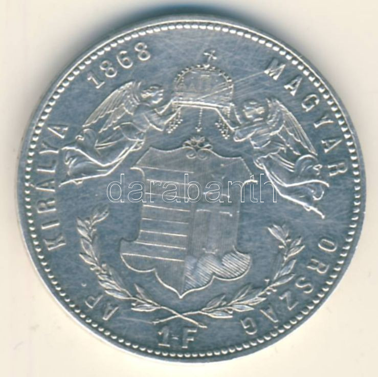 1868GY.F. 1Ft Ag "Angyalos címer" T:2/2- k. https://www.darabanth.com/de/152-Fernauktion/152.0/Numismatik/Ungarische-Munzen~700011/1868GYF-1Ft-Ag-Angyalos-cimer-T22-k~II468383