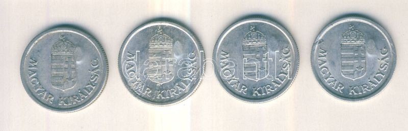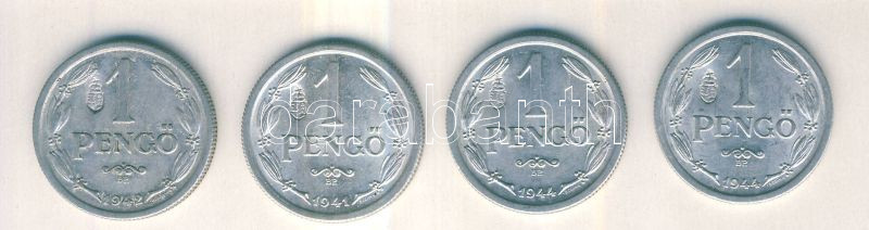 1941-44. 1P (4x) mind "koronás-címeres" ellenjegyyel T:2,3 https://www.darabanth.com/de/152-Fernauktion/152.0/Numismatik/Ungarische-Munzen~700011/1941-44-1P-4x-mind-koronas-cimeres-ellenjegyyel-T2-3~II468994