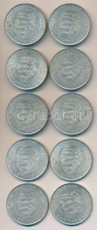 1947. 5Ft Ag "Kossuth" (10x) T:vegyes https://www.darabanth.com/de/152-Fernauktion/152.0/Numismatik/Ungarische-Munzen~700011/1947-5Ft-Ag-Kossuth-10x-Tvegyes~II468774