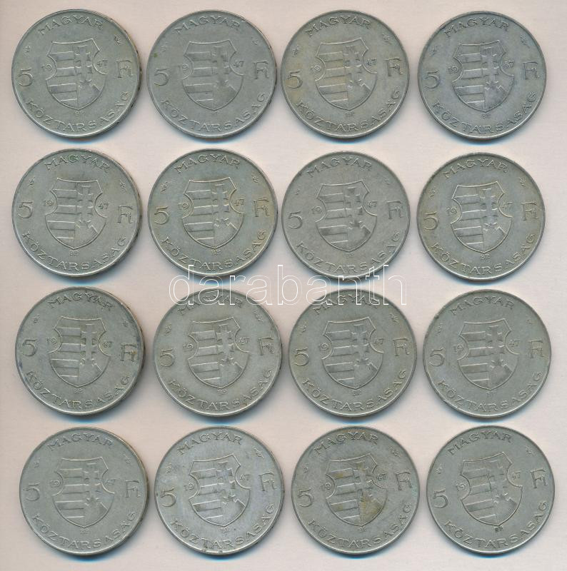 1947. 5Ft Ag "Kossuth" (16x) T:vegyes https://www.darabanth.com/de/152-Fernauktion/152.0/Numismatik/Ungarische-Munzen~700011/1947-5Ft-Ag-Kossuth-16x-Tvegyes~II471647