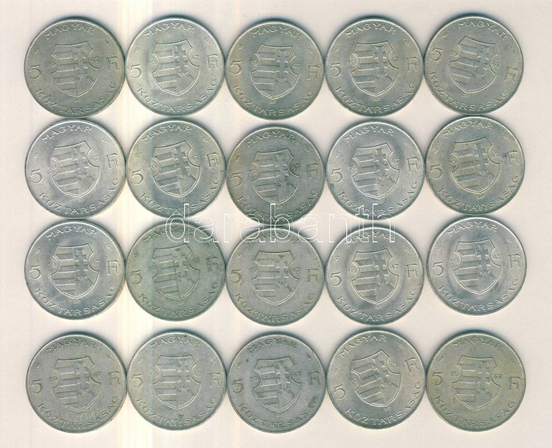 1947. 5Ft Ag "Kossuth" (20x) T:vegyes https://www.darabanth.com/de/152-Fernauktion/152.0/Numismatik/Ungarische-Munzen~700011/1947-5Ft-Ag-Kossuth-20x-Tvegyes~II468775