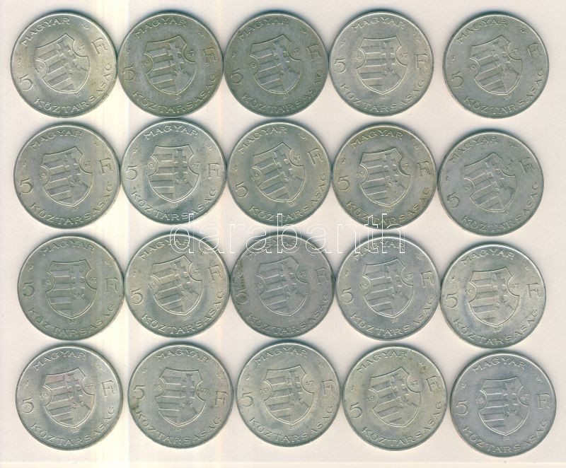 1947. 5Ft Ag "Kossuth" (20x) T:vegyes https://www.darabanth.com/de/152-Fernauktion/152.0/Numismatik/Ungarische-Munzen~700011/1947-5Ft-Ag-Kossuth-20x-Tvegyes~II468777