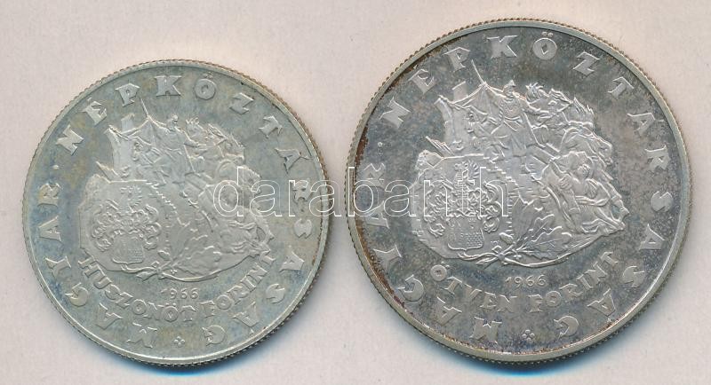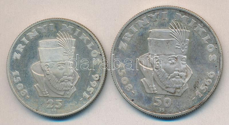 1966. 25Ft Ag + 50Ft Ag "Zrínyi" pár T:exPP https://www.darabanth.com/de/152-Fernauktion/152.0/Numismatik/Ungarische-Munzen~700011/1966-25Ft-Ag-plus-50Ft-Ag-Zrinyi-par-TexPP~II472875
