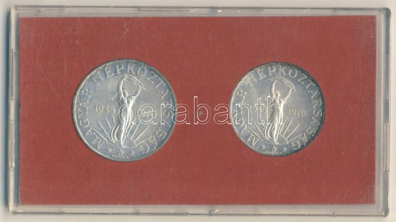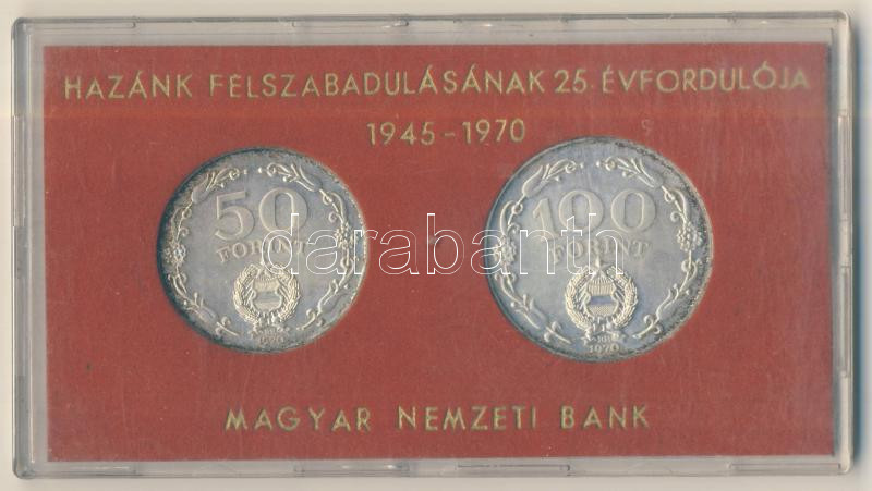 1970. 50Ft Ag + 100Ft "Felszabadulás" pár T:BU Eredeti MNB plasztiktok... https://www.darabanth.com/de/152-Fernauktion/152.0/Numismatik/Ungarische-Munzen~700011/1970-50Ft-Ag-plus-100Ft-Felszabadulas-par-TBU-Eredeti-MNB-plasztiktokban~II470809