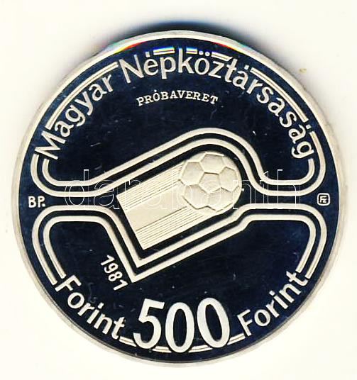 1981. A Labdarúgó Világbajnokság 500Ft Ag "PRÓBAVERET" ki nem adott tervezet! T:PP csk 50db R!