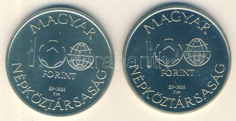 1985. 100Ft (2x) klf "Mexikói Labdarúgó VB" T:BU https://www.darabanth.com/de/152-Fernauktion/152.0/Numismatik/Ungarische-Munzen~700011/1985-100Ft-2x-klf-Mexikoi-Labdarugo-VB-TBU~II470671