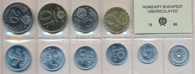 1986. 2f-20Ft 10db klf érmés forgalmi sor fóliatokban T:1 https://www.darabanth.com/de/152-Fernauktion/152.0/Numismatik/Ungarische-Munzen~700011/1986-2f-20Ft-10db-klf-ermes-forgalmi-sor-foliatokban-T1~II466835
