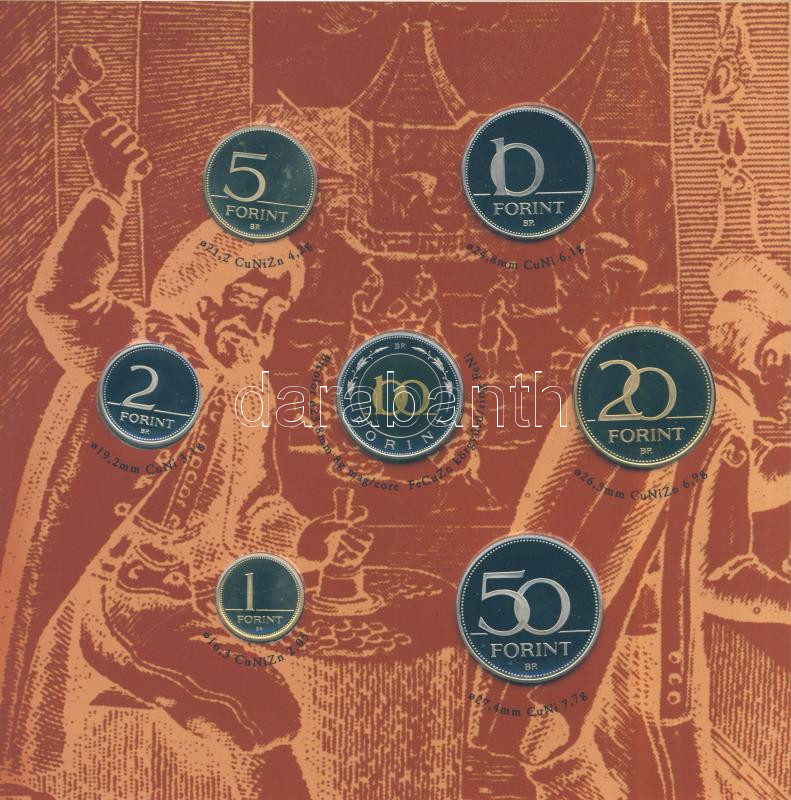 Beschreibung: 2001. 1Ft-100Ft 7klf db, szettben "Ezeréves a magyar pénzverés" T:PP Csak 3000db