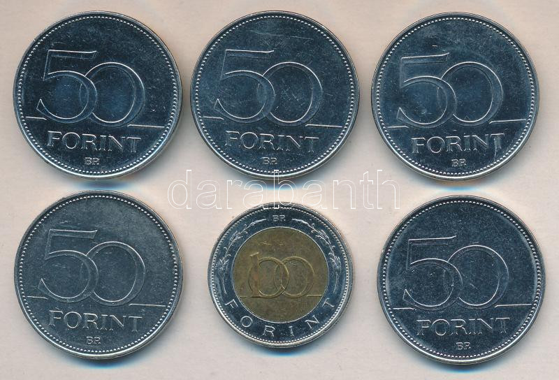 2002. 100Ft "Kossuth" + 2004-2007. 50Ft 5db klf emlékverete T:2 https://www.darabanth.com/de/152-Fernauktion/152.0/Numismatik/Ungarische-Munzen~700011/2002-100Ft-Kossuth-plus-2004-2007-50Ft-5db-klf-emlekverete-T2~II472788