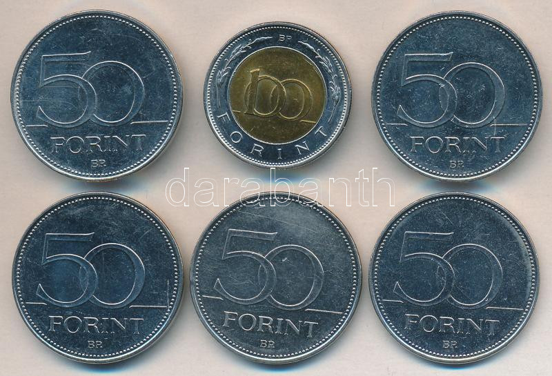 2002. 100Ft "Kossuth" + 2004-2007. 50Ft 5db klf emlékverete T:2 https://www.darabanth.com/de/152-Fernauktion/152.0/Numismatik/Ungarische-Munzen~700011/2002-100Ft-Kossuth-plus-2004-2007-50Ft-5db-klf-emlekverete-T2~II472791