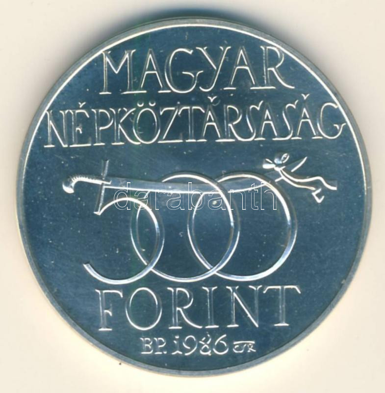 986. 500Ft Ag "Budavár visszavétele 1686" T:BU https://www.darabanth.com/de/152-Fernauktion/152.0/Numismatik/Ungarische-Munzen~700011/986-500Ft-Ag-Budavar-visszavetele-1686-TBU~II470659