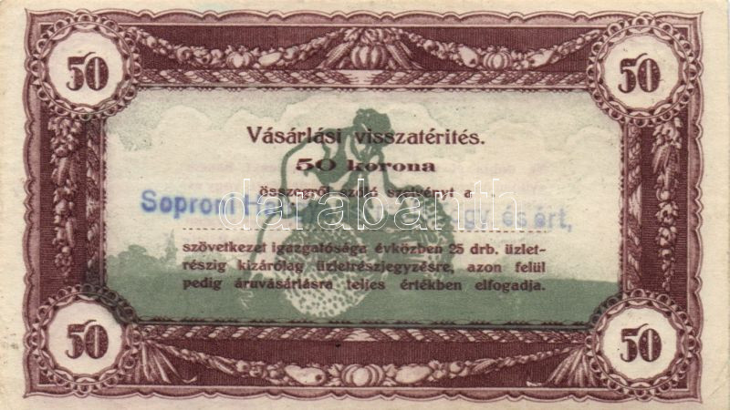 1920-as évek eleje 50K + 500K vásárlási visszatérítés "Soproni Hangya ... https://www.darabanth.com/de/152-Fernauktion/152.0/Numismatik/Ungarusche-und-Auslandische-Notgelden~700009/1920-as-evek-eleje-50K-plus-500K-vasarlasi-visszaterites-Soproni-Hangya-termelo-fogy-es-ert~II468964