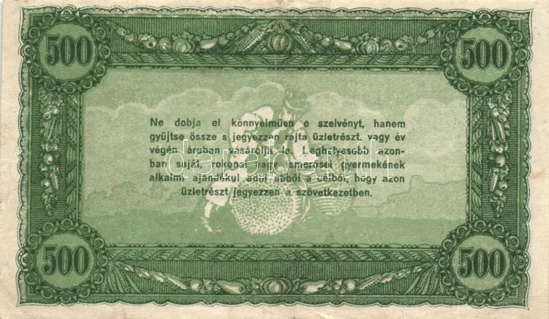 Beschreibung: 1920-as évek eleje 50K + 500K vásárlási visszatérítés "Soproni Hangya termelő fogy. és ért..." és "Kaposvár vidéke..." T:III-