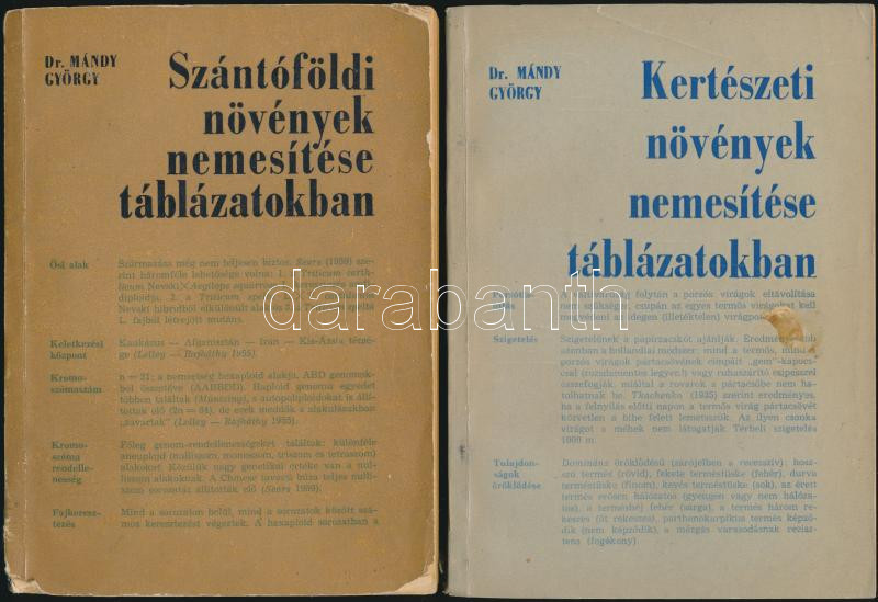 1963/1964 Dr. Mándy György: Kertészeti és szántóföldi növények nemesít... https://www.darabanth.com/de/153-Fernauktion/153.0/Andere-Sammelgebiete/Bucher-Kuche-und-Garten~500019/19631964-Dr-Mandy-Gyorgy-Kerteszeti-es-szantofoldi-novenyek-nemesitese-tablazatokban~II475753