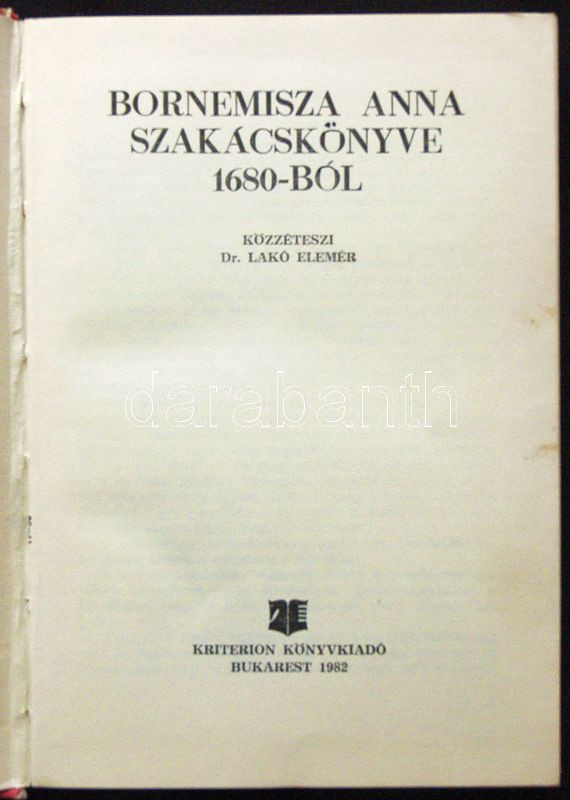 1982 Dr. Lakó Elemér: Bornemisza Anna szakácskönyve 1680-ból, Kriterio... https://www.darabanth.com/de/153-Fernauktion/153.0/Andere-Sammelgebiete/Bucher-Kuche-und-Garten~500019/1982-Dr-Lako-Elemer-Bornemisza-Anna-szakacskonyve-1680-bol-Kriterion-Kiado-Bukarest-kiadC3~II474286