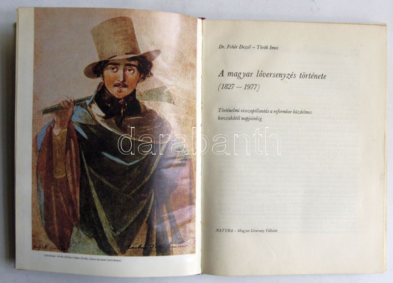 1977 Fehér-Török: A magyar lóversenyzés története (1827-1977), kiadja a Natura-Magyar Lóverseny Vállalat, kiadói egészvászon kötésben, kissé megviselt állapotban