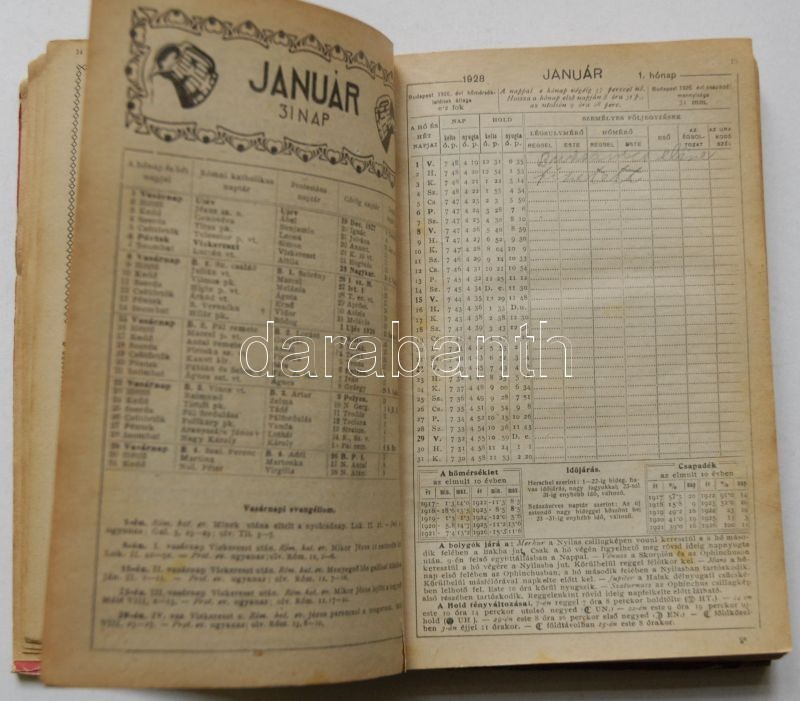 1928 Kincses kalendárium, Budapesti Hírlap nyomdája, kiadói keményköté... https://www.darabanth.com/de/153-Fernauktion/153.0/Andere-Sammelgebiete/Bucher-Sonstige-Raritaten~500027/1928-Kincses-kalendarium-Budapesti-Hirlap-nyomdaja-kiadoi-kemenykotesben-gazdag-temaval-~II474882