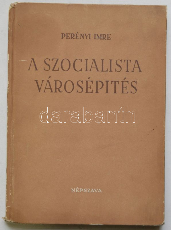 1952 Perényi Imre: A szocialista városépítés - várostervezésünk néhány kérdése, Népszava Kiadó, Bp., tervrajzokkal és képekkel, kiadói kemény papírkötésben, megviselt állapotban