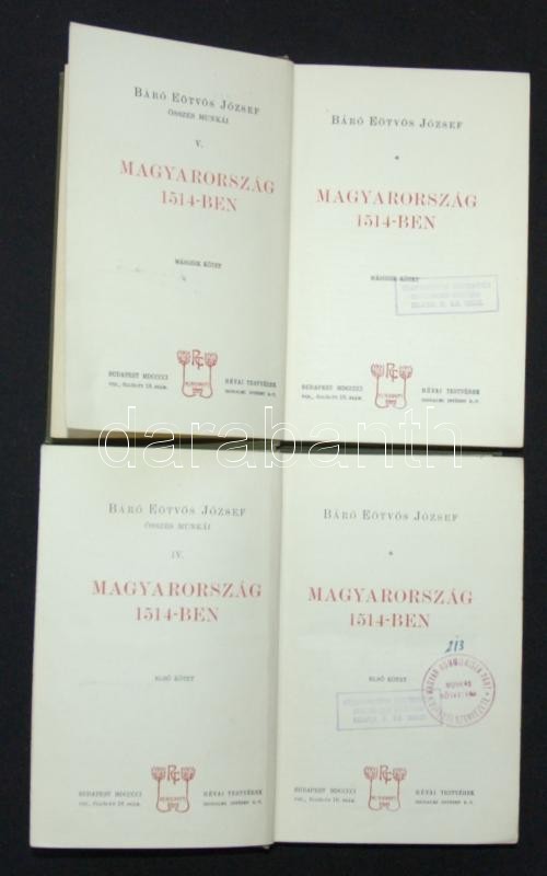 Báró Eötvös József: Magyarország 1514-ben. I-II. Bp., 1901. Révai. Ara... https://www.darabanth.com/de/153-Fernauktion/153.0/Andere-Sammelgebiete/Bucher-Sonstige-Raritaten~500027/Baro-Eotvos-Jozsef-Magyarorszag-1514-ben-I-II-Bp-1901-Revai-Aranyozott-egeszvaszon-k~II477211