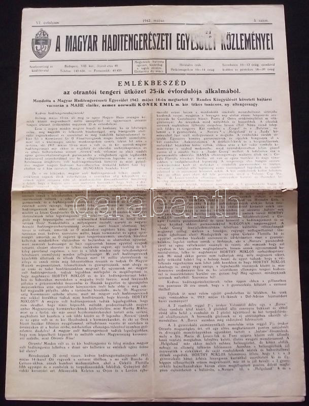 1942 Magyar Haditengerészeti Egyesület közleményei, kizárólag tagok ré... https://www.darabanth.com/de/153-Fernauktion/153.0/Andere-Sammelgebiete/Drucksachen~500016/1942-Magyar-Haditengereszeti-Egyesulet-kozlemenyei-kizarolag-tagok-reszere~II475023