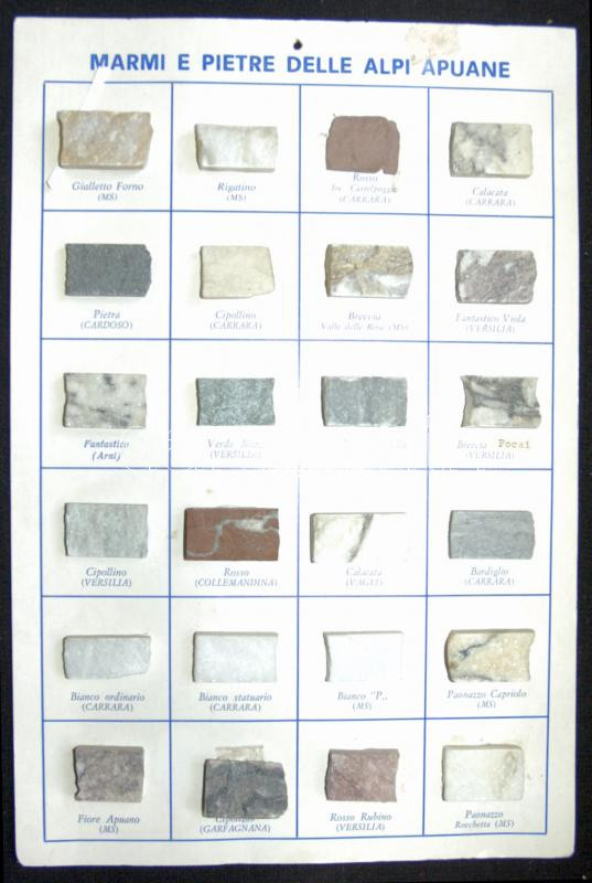 Beschreibung: 24 darabos olasz márvány gyűjtemény a típus megnevezésével, és a lelőhely feltüntetésével