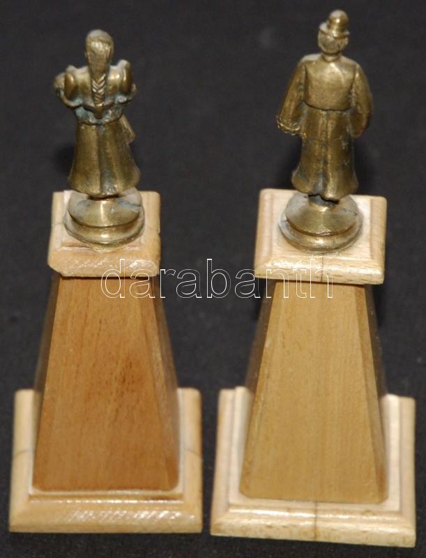 Beschreibung: 2db népies réz figura fa talapzaton 14cm magas
