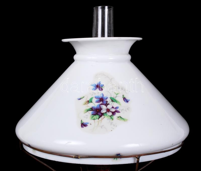 Beschreibung: Kézzel festett dekoratív üveg petróleum lámpa buráján matricás díszítéssel m:49 cm, az alján kis töréssel