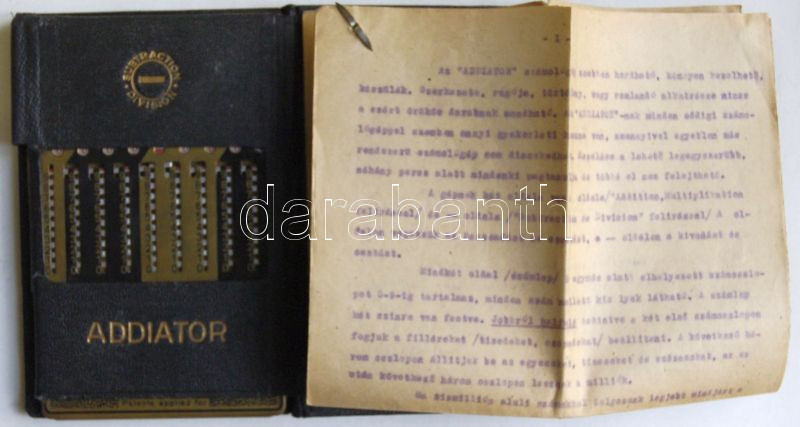 cca 1935 Loewinger I. féle addiator számológép magyar gépelt leírással https://www.darabanth.com/de/153-Fernauktion/153.0/Andere-Sammelgebiete/Flohmarkt~500119/cca-1935-Loewinger-I-fele-addiator-szamologep-magyar-gepelt-leirassal~II475573