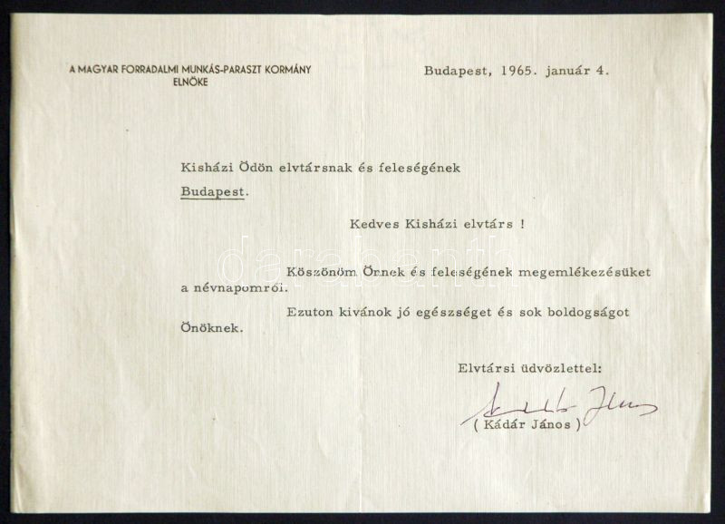 1965 Kádár János aláírt eredeti levele Magyar Forradalmi Munkás-Paras... https://www.darabanth.com/de/153-Fernauktion/153.0/Andere-Sammelgebiete/Signatur~500006/1965-Kadar-Janos-alairt-eredeti-levele-Magyar-Forradalmi-Munkas-Paraszt-Kormany-fejleces-le~II472839