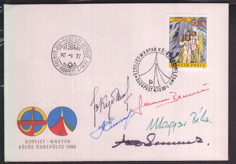 1980 Szovjet-Magyar közös űrrepülés FDC 5 magyar és sziovjet űrhajós a... https://www.darabanth.com/de/153-Fernauktion/153.0/Andere-Sammelgebiete/Signatur~500006/1980-Szovjet-Magyar-kozos-urrepules-FDC-5-magyar-es-sziovjet-urhajos-alairasaval-Inter~II457074