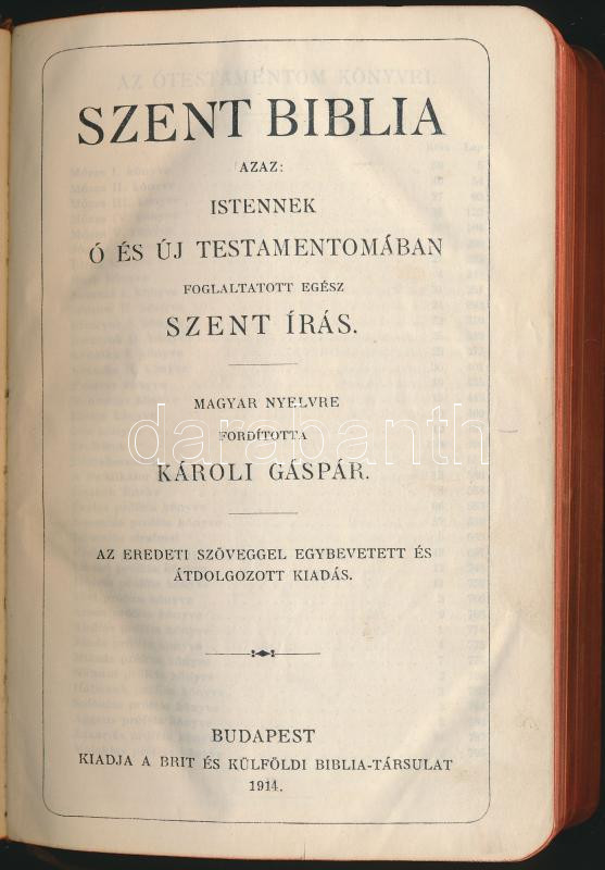 1914 Szent Biblia, Brit és Külföldi Biblia-Társulat kiadása, Bp., aran... https://www.darabanth.com/de/154-Fernauktion/154.0/Ansichtskarten/Bucher-Religion~6000224/1914-Szent-Biblia-Brit-es-Kulfoldi-Biblia-Tarsulat-kiadasa-Bp-aranyozott-lapszelekkel-es-~II480063