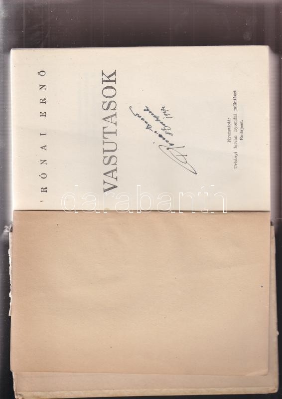 ~1940 Rónai Ernő: Vasutasok, Urbányi István nyomda, Bp., kiadói kemény... https://www.darabanth.com/de/154-Fernauktion/154.0/Ansichtskarten/Bucher-Sonstige-Raritaten~6000227/7E1940-Ronai-Erno-Vasutasok-Urbanyi-Istvan-nyomda-Bp-kiadoi-kemeny-papirkotesben-dedik~II478895