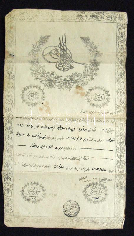Díszes török okmány szignettával https://www.darabanth.com/de/154-Fernauktion/154.0/Ansichtskarten/Dokument~6000208/Diszes-torok-okmany-szignettaval~II480256