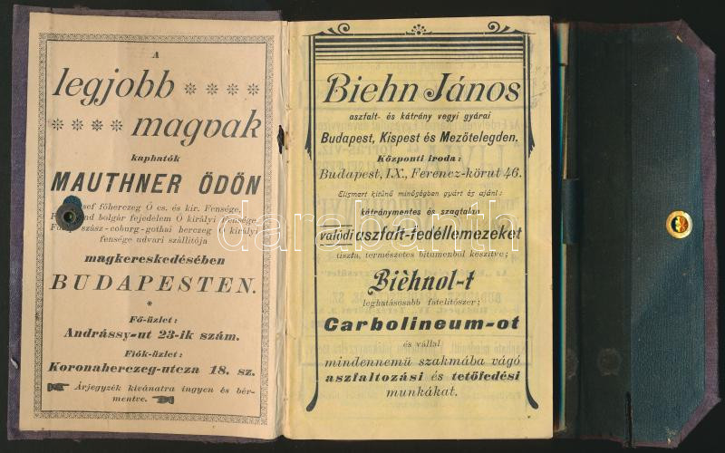 1897 Kitöltetlen zsebnaptár reklámokkal gombos szövetborításban https://www.darabanth.com/de/154-Fernauktion/154.0/Ansichtskarten/Drucksachen~6000220/1897-Kitoltetlen-zsebnaptar-reklamokkal-gombos-szovetboritasban~II480929