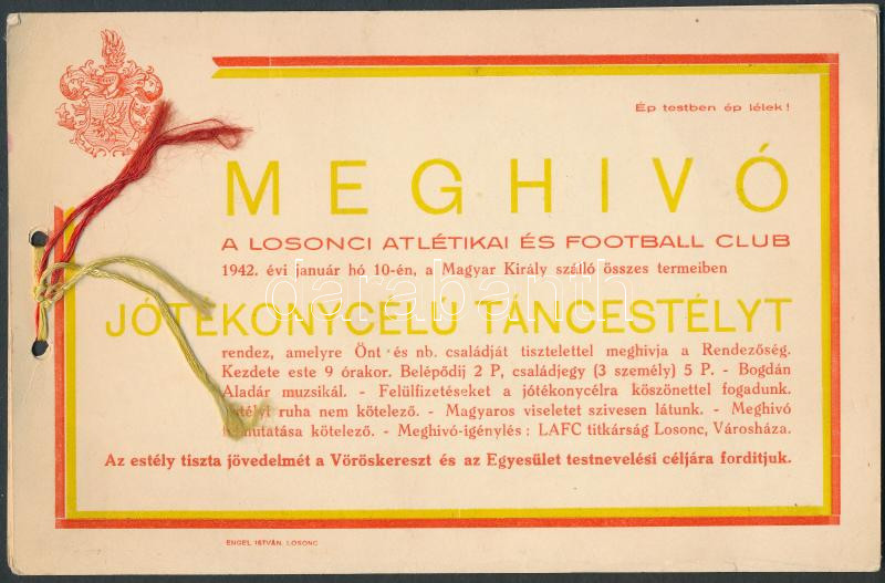 1942 Losonci atlétikai és Footbal club meghívója 6p. https://www.darabanth.com/de/154-Fernauktion/154.0/Ansichtskarten/Drucksachen~6000220/1942-Losonci-atletikai-es-Footbal-club-meghivoja-6p~II481084