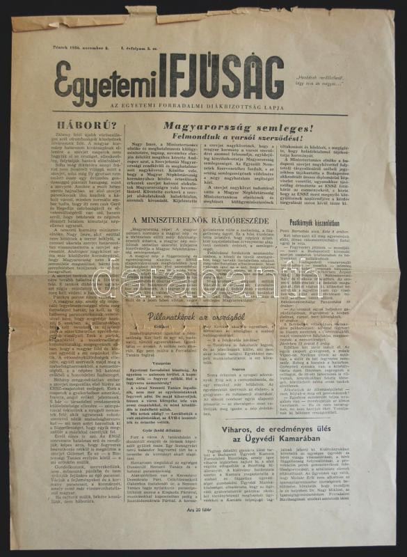 1956 Egyetemi Ifjúság folyóirat I. évfolyam 5. száma a forradalom híre... https://www.darabanth.com/de/154-Fernauktion/154.0/Ansichtskarten/Drucksachen~6000220/1956-Egyetemi-Ifjusag-folyoirat-I-evfolyam-5-szama-a-forradalom-hireivel~II469262
