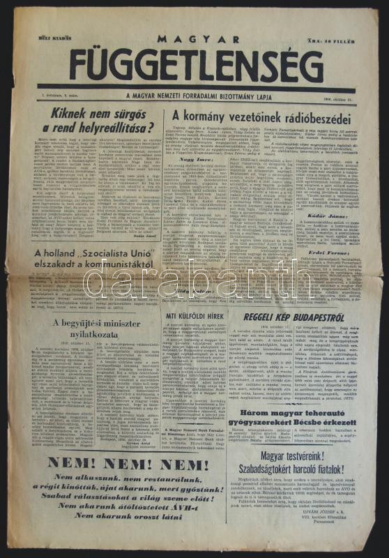 1956 Magyar Függetlenség folyóirat I. évfolyam 3. száma a forradalom h... https://www.darabanth.com/de/154-Fernauktion/154.0/Ansichtskarten/Drucksachen~6000220/1956-Magyar-Fuggetlenseg-folyoirat-I-evfolyam-3-szama-a-forradalom-hireivel~II469257