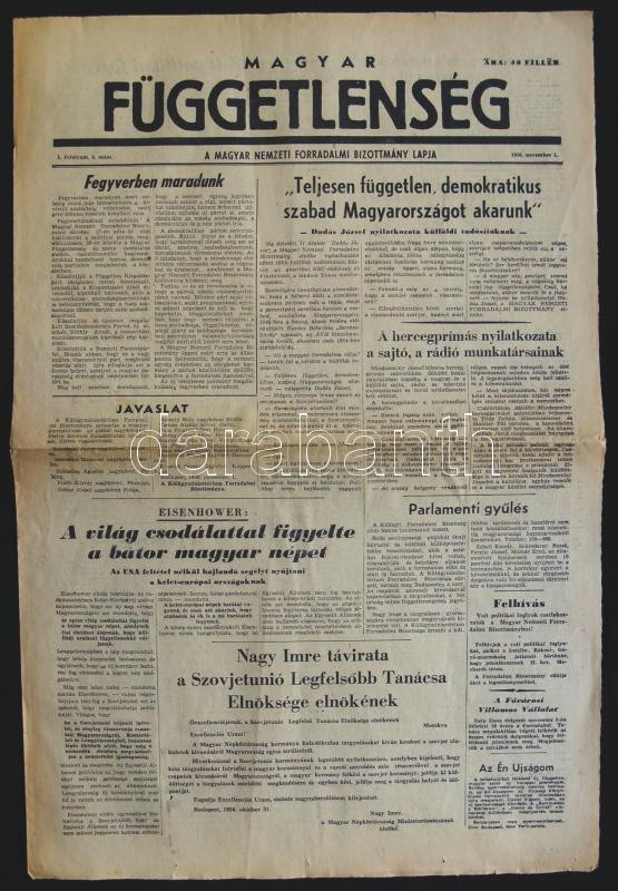 1956 Magyar Függetlenség folyóirat I. évfolyam 4. száma a forradalom h... https://www.darabanth.com/de/154-Fernauktion/154.0/Ansichtskarten/Drucksachen~6000220/1956-Magyar-Fuggetlenseg-folyoirat-I-evfolyam-4-szama-a-forradalom-hireivel~II469258