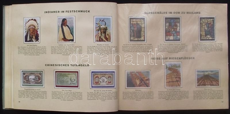 cca 1935 Tarka világ: Művészet, állatvilág: 270 cigarettaképet tartalmazó komplett mappa a dinoszauruszoktól a modern művészetig / Cigarette-pictures 270 picture complete booklet