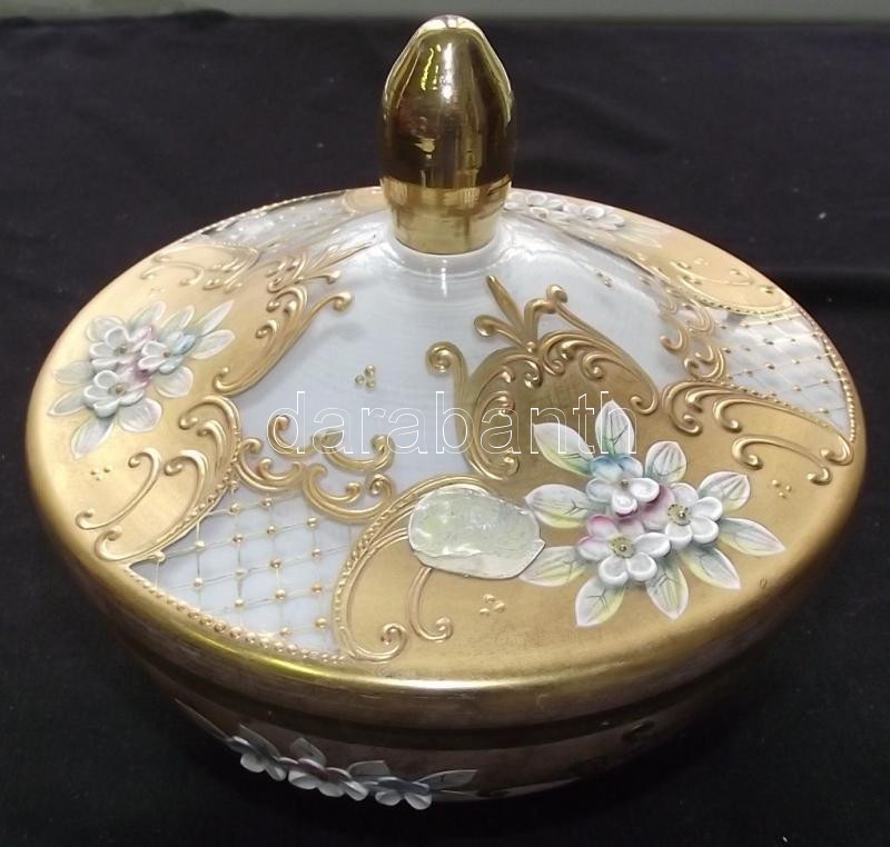 Gazdagon aranyozott festett üveg bonbonier 16cm magas https://www.darabanth.com/de/154-Fernauktion/154.0/Ansichtskarten/Flohmarkt~6000230/Gazdagon-aranyozott-festett-uveg-bonbonier-16cm-magas~II479417