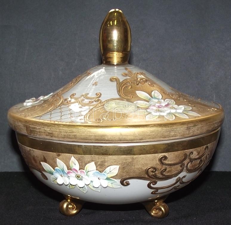 Beschreibung: Gazdagon aranyozott festett üveg bonbonier 16cm magas