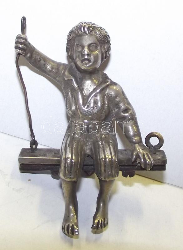 Hintázó kisfiú figura fémből frakkján gombbal / Swinging boy metal fig... https://www.darabanth.com/de/154-Fernauktion/154.0/Ansichtskarten/Flohmarkt~6000230/Hintazo-kisfiu-figura-fembol-frakkjan-gombbal-Swinging-boy-metal-figure-8-cm~II439745