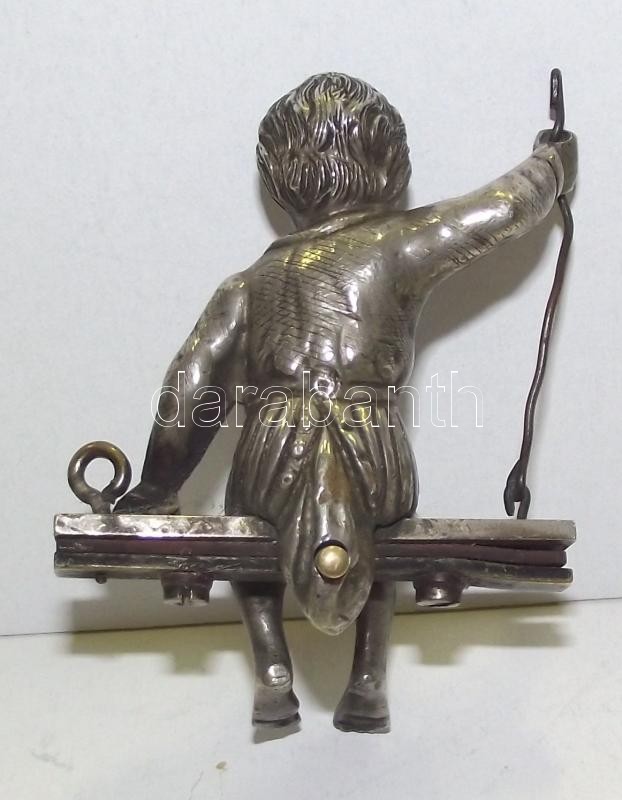 Beschreibung: Hintázó kisfiú figura fémből frakkján gombbal / Swinging boy metal figure 8 cm