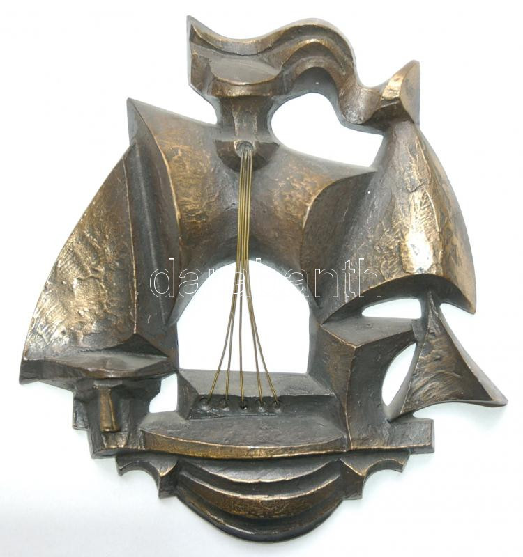 Beschreibung: Kótai J. jelzéssel ellátott iparművészeti bronz hajó alakú fali dísz 20x23cm