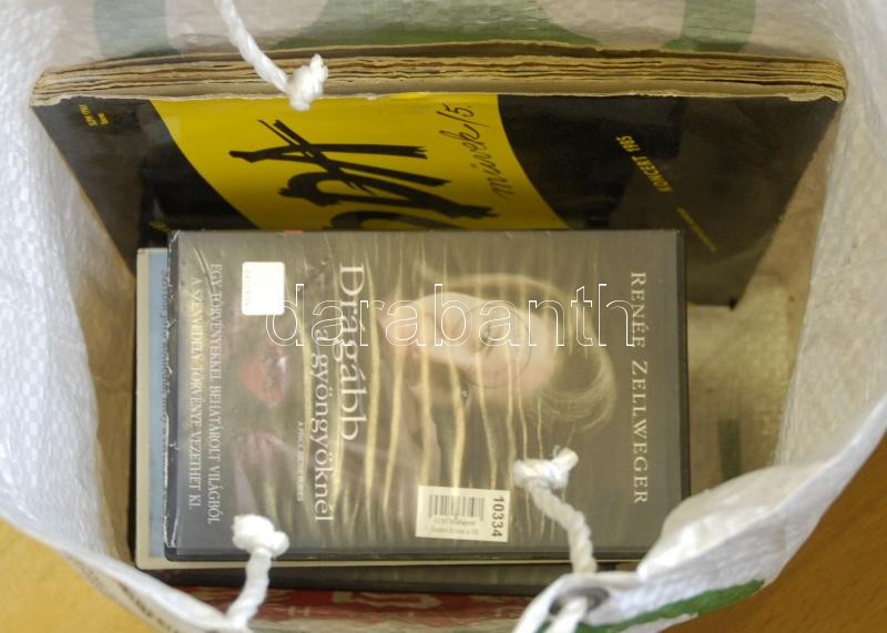 Beschreibung: Nagy szatyor bolhapiac tétel: 9db VHS kazetta, 11db bakelit lemez, 3db műsoros magnókazetta, karóra, asztali óra, pár könyv, folyóiratok, porcelán bonbonier-fedél, stb.
