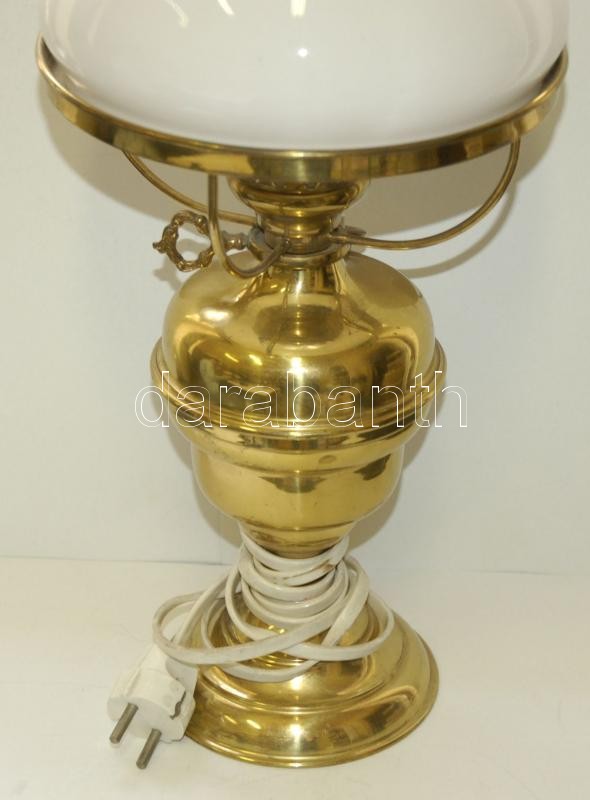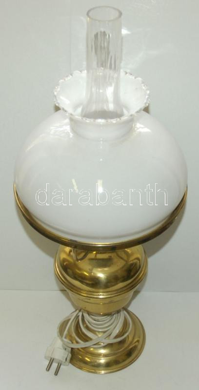Beschreibung: Nagyméretű réz Lüszter-lámpa üveg búrával 53cm magas