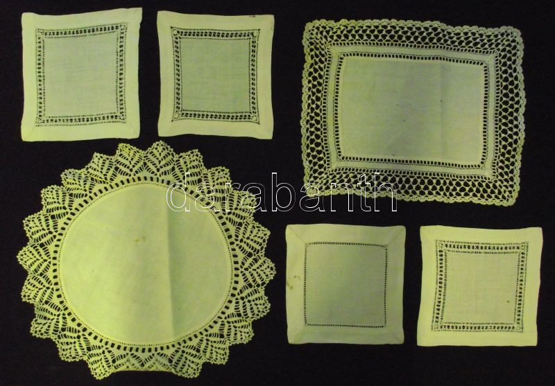 cca 1900 2 db Kézi csipke asztalterítő 25x20 cm és 4 db csipke-zsebke... https://www.darabanth.com/de/154-Fernauktion/154.0/Ansichtskarten/Flohmarkt~6000230/cca-1900-2-db-Kezi-csipke-asztalterito-25x20-cm-es-4-db-csipke-zsebkendo-14x14-cm-Hand-embro~II413699
