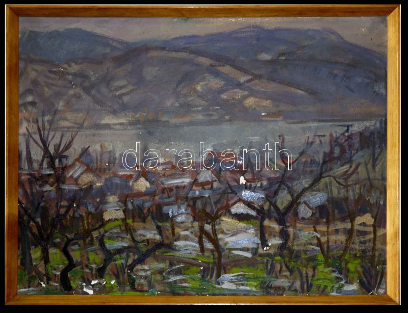 Beschreibung: 1968 Uhrig Zsigmond (1919-1993): Visegrád, Olaj, vászon, jelzett, 80x60 cm keretben (sérült)
