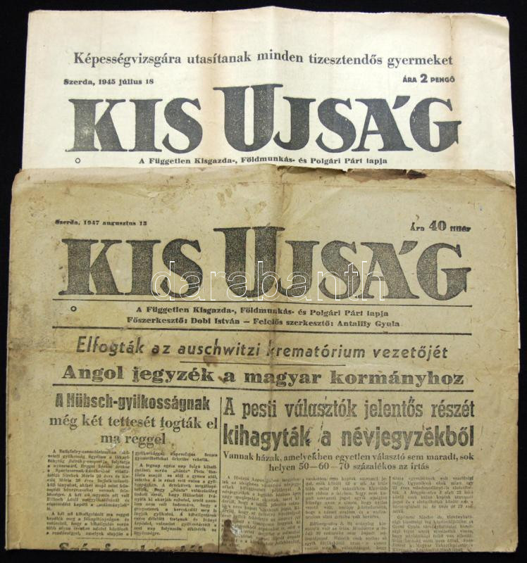 1945-1947 A kis újság 2 száma, benne Benes nyilatkozata és a kékcédulás választási csalásokról