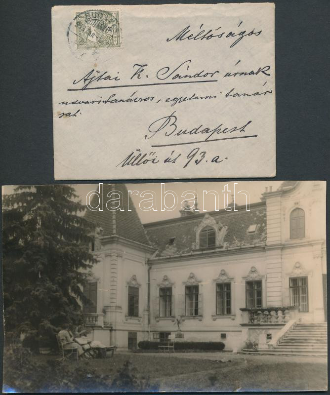 Beschreibung: Abonyi Ajtay kastélyról készült fotó 11x17cm és egy Ajtai Sándornak címzett levél 1913-ból